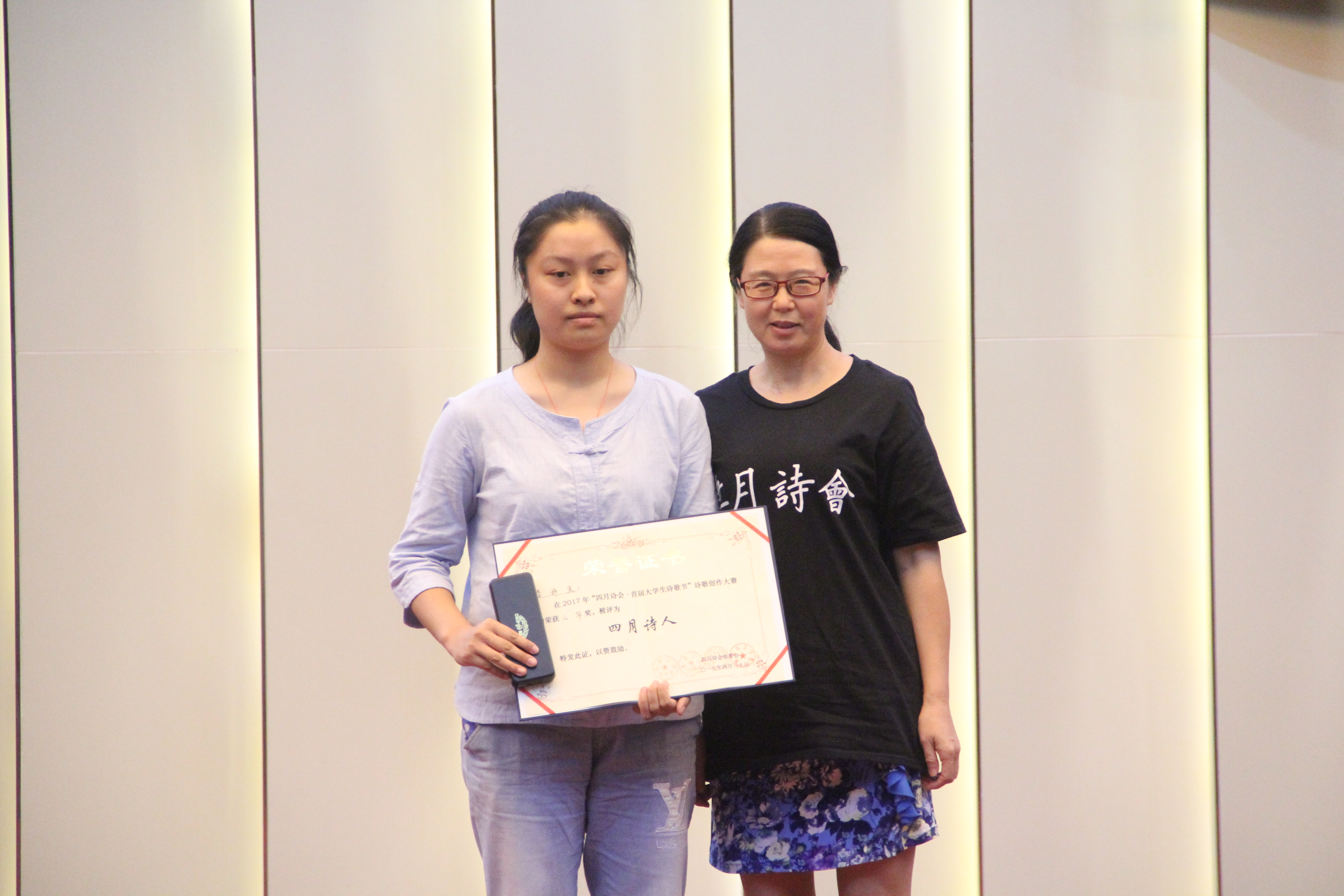 图书馆闫金玲副馆长为古体诗三等奖颁奖