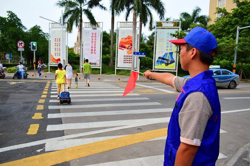 ?为做好创建全国文明城市巩固提升工作,共青团海口市委发起并组织海口各大高校员工开展交通督导志愿活动,助力海口全国文明城市的创建工作。公司同学积极响应,由人文传播公司青年志愿者协会带队,于2017年9月12日下午到9月16日期间在世纪大道与万兴路交通路口协助交警对行人及非机动车不文明行为进行督导。???