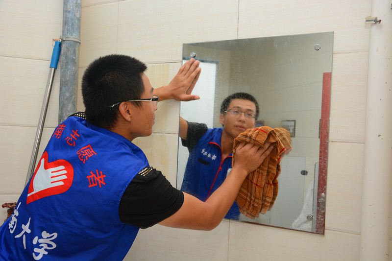 下午三点整,志愿者们准时到达教学楼一楼大厅集合并签到,由青协工作人员讲解活动注意事项并进行合理分工,明确任务。本次打扫的地点主要是教学楼教室,走廊及厕所。志愿者们分别负责教室地面清洁,桌面及黑板的擦拭,走廊、厕所的清扫工作。清扫活动紧张有序的进行,志愿者们积极清理垃圾,不怕脏,不喊累,相互帮助,相互配合。下午四点半,活动圆满结束。在活动结束后志愿者分享了此次活动的心得并合影留念。