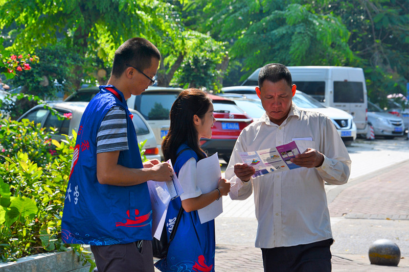 本次的“善行100”活动选址海秀中邮政支局。上午八点,志愿者们在邮局大厅集合完毕,由带队志愿者向其他参与者讲解募捐流程及活动目的、意义,志愿者们认真记录。活动开始后,志愿者们两人一组结伴而行。十月份海南的天气依旧炎热,但仍能见到志愿者们忙碌的身影和助人为乐后发自内心的笑容。活动过程中,一名志愿者热心为外国人指路,将志愿精神传递给了不同国度的人。高尔基曾经说过,社会中必不可少的就是人与人之间的互相帮助。一个人的爱心也许微不足道,但无数人的爱心就会汇聚成汪洋大海,为需要帮助的孩子送去春日般的温暖。