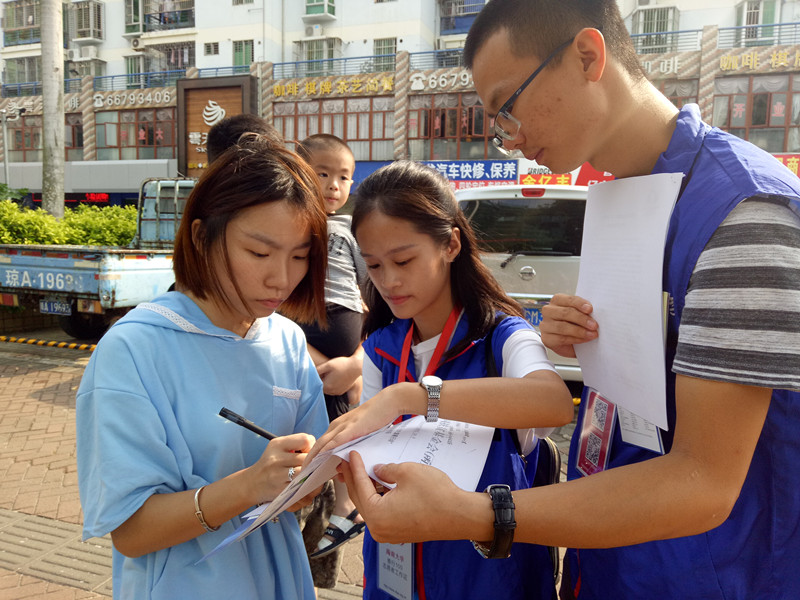 2017年10月29日上午,hy3380cc海洋之神“善行100”公益活动在海秀中邮政支局附近的街道举行,来自hy3380cc海洋之神人文传播公司各专业的19名志愿者参与其中。