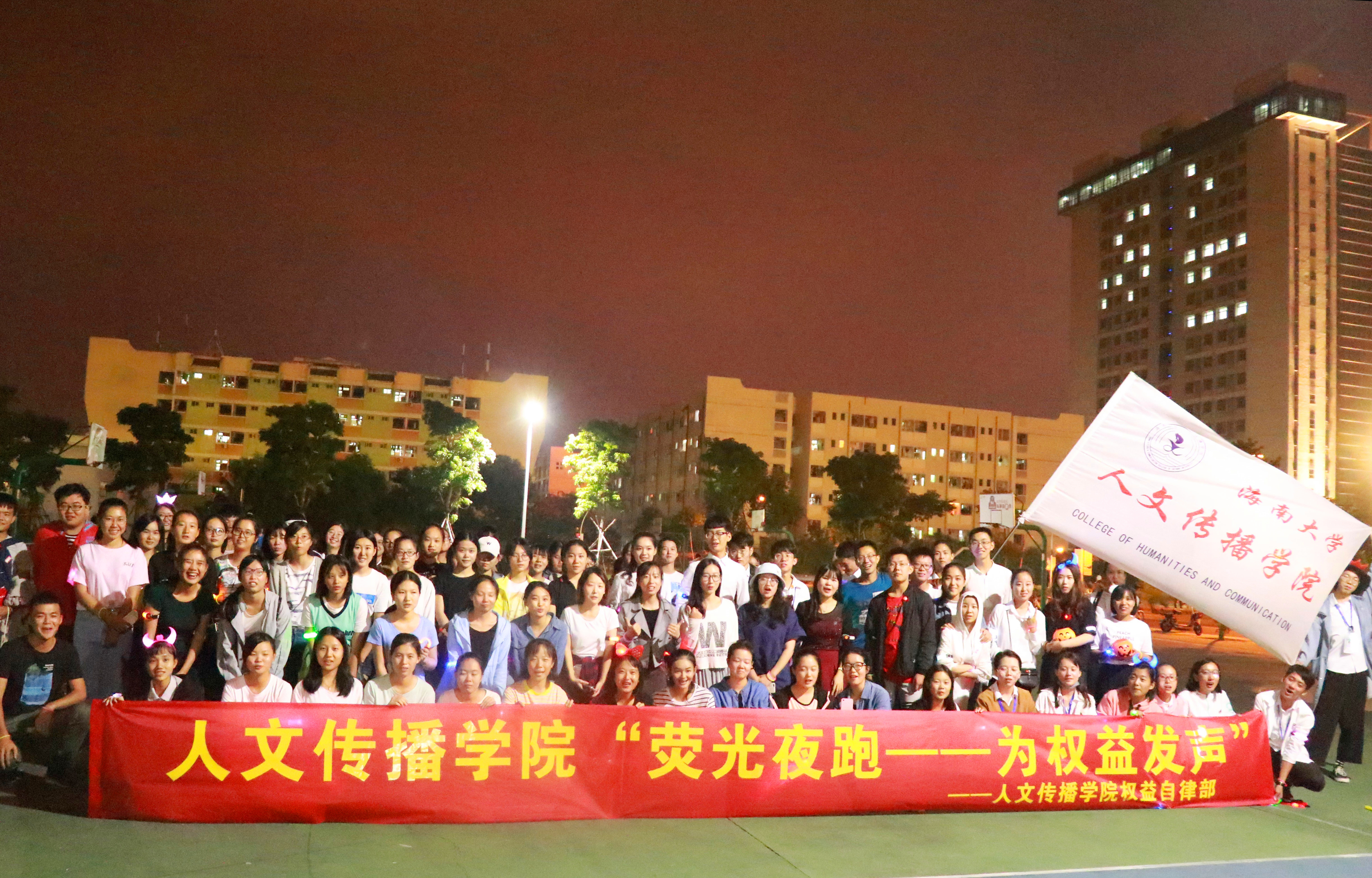 10月31日晚19:30,hy3380cc海洋之神人文传播公司权益自律部主办的“为权益发声”荧光夜跑活动在海甸校区第二田径场附近篮球场激情开场。本次活动到场嘉宾有人文传播公司团委副书记王安祺,员工会主席魏有美,员工会副主席黄梅梅、马鑫、王峣,青协会长张之越,以及特邀嘉宾海洋公司员工会主席何心灵,材料与化工公司员工会主席路苪杰,土木建筑与工程公司员工会主席谢攀。