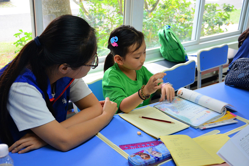 志愿者辅导小朋友写作业