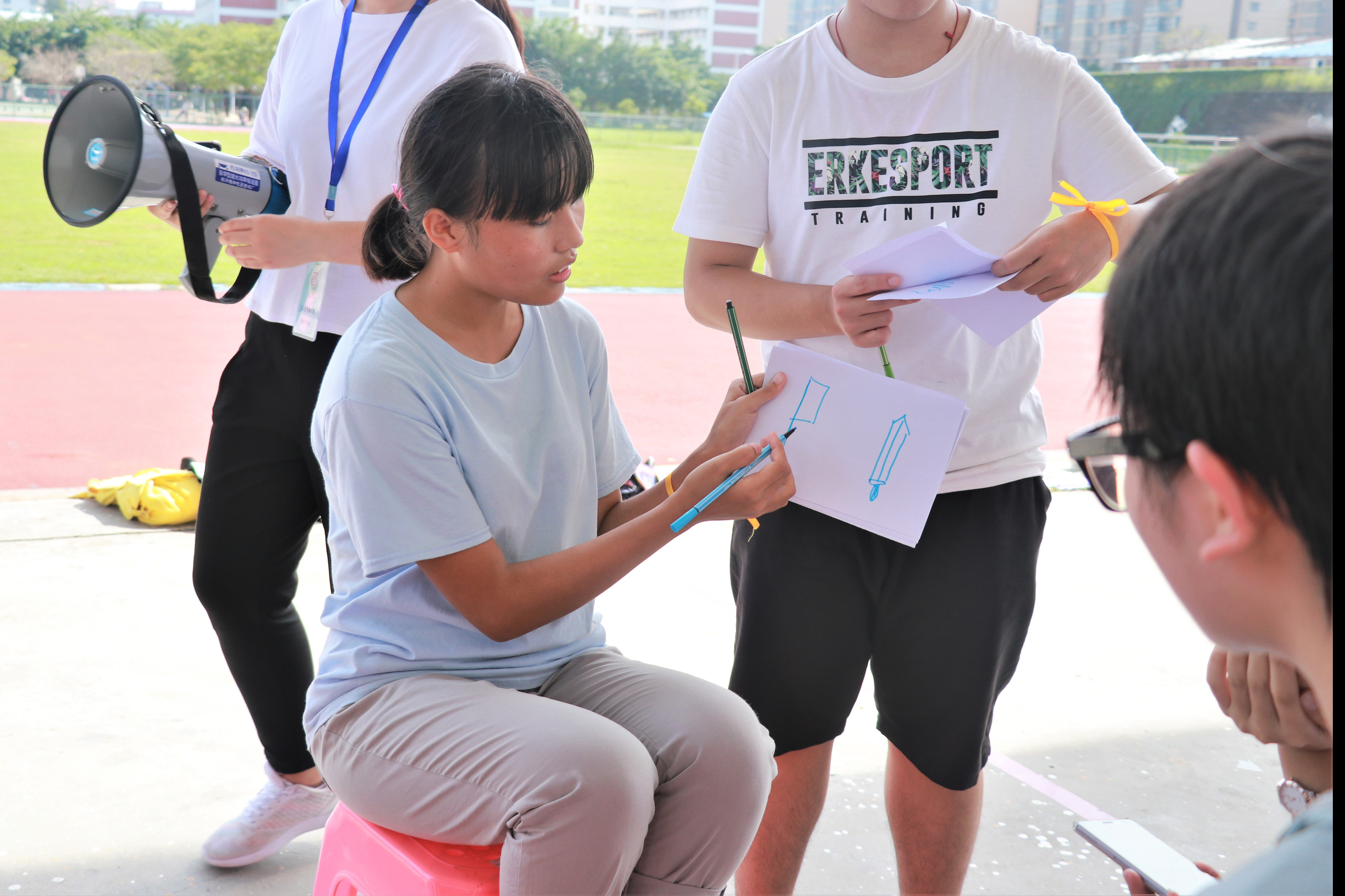 气温在时间的流逝中渐渐升高,但是同学们的热情并没有减退。在第三轮游戏“寻寻觅觅”中,各队队员们紧密配合,井然有序,倒计时一开始,大家便快速跑向各处去寻找图片上的彩笔。而在“速度与默契”的比赛中,团体精神更是被大家发挥到极致,队员们齐心协力运送豆子,并在“第六感”游戏中指导寻找者找到被寻找者,巧用各种方式,妙趣连连。最后,根据计时,紫队获胜。