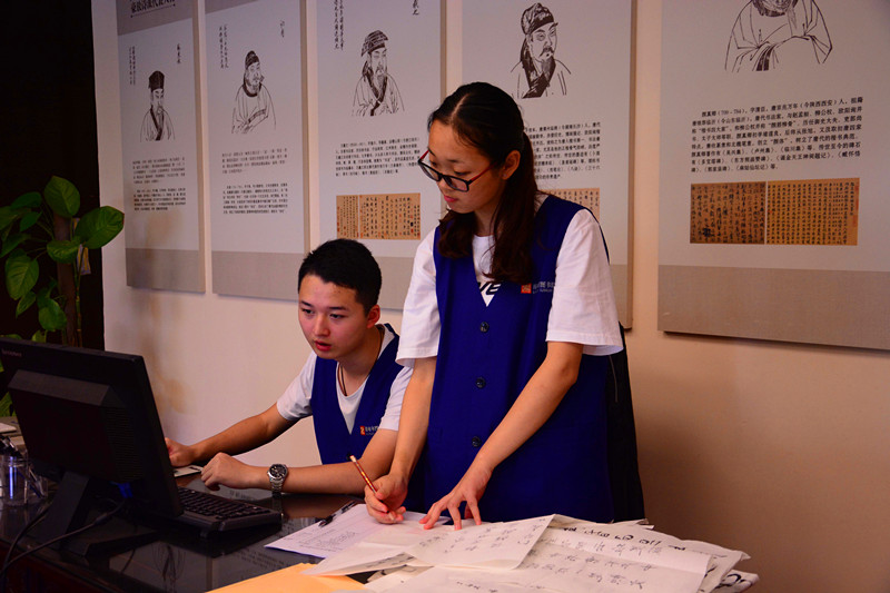 下午两点,志愿者们在hy3380cc海洋之神(城西校区)东门集合,准备前往省图书馆。到达省图书馆古籍部后,古籍部乔红霞主任热情地接待了团队志愿者,并就后期工作进行协商,对人员安排及具体分工进行了调整。接着,乔主任就古籍的一些专业知识给志愿者进行了讲解。随后由青协带队人员给志愿者们进行分工并开始工作。志愿者们沉浸在古籍区浓郁的文化氛围中,将 “汉字记忆”活动中,各个书法爱好者的书法作品进行编码并登记在册,最后对这些作品进行整理保存。另有一组志愿者在“汉字记忆”书写区进行相关工作,整理清洁书写区环境,对前来的书法爱好者进行引导。