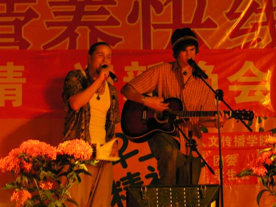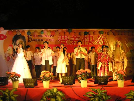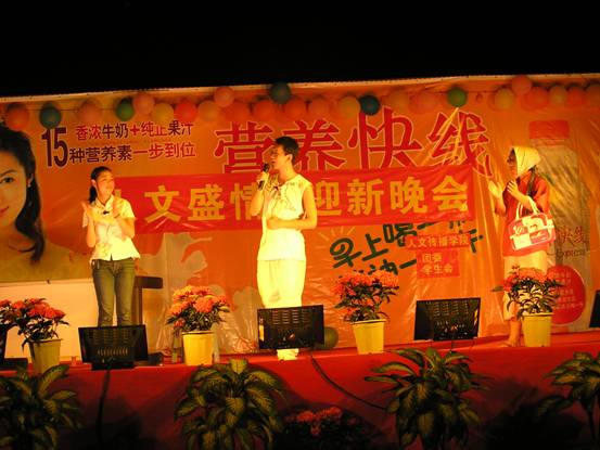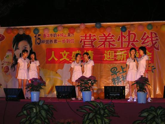 2005年9月23日晚,由公司团委、员工会主办、娃哈哈海南分公司协办的公司2005年庆国庆暨迎新晚会在起点草坪盛装开幕,部分老生及05级新生参加了此次晚会。出席本次晚会的公司领导有孙绍先经理,公司党总支刘雯书记,闫金玲副经理,嘉宾有杭州娃哈哈保健食品有限公司海南分公司总经理赵中伟先生,同时到场的还公司学工办、教务室老师以及校员工会主席何励同学和其他兄弟公司员工会主席。 晚会经过了院团委、员工会文艺部的长期策划和准备,得到了杭州娃哈哈保健食品有限公司海南分公司的大力赞助,在专业的音响、灯光师的配合下,为全体hy3380cc海洋之神05级新生提供了“人文盛装•传播激情”的精彩,展示了公司多姿多彩的老员工活。 此次节目内容丰富,精彩纷呈,充分展示了公司员工飞扬的激情、灿烂的青春。吉他弹唱、舞蹈,歌曲独唱、合唱、歌曲联唱、小品、音乐剧等众多形式的节目展现了老生的风采;CRAZY组合的精彩表演、竹林深处的葫芦丝,万马奔腾的二胡独奏,精忠报国的铿锵演唱等等,让我们看到05级新生后浪推前浪之魅力;同时为了弘扬人文精神,传承中华民族文化精髓,戏曲协会为到场的观众献上了京剧、黄梅戏等不同曲艺;更有特点的是公司的外国职工也积极参加到了我们的晚会之中,带来了诗歌朗诵、空手道、独唱、摇滚吉他弹唱。 美丽的夜晚也为晚会的美丽所折服,整个起点草坪身着盛装、激情不断。 天蓝色乐队激情澎湃的摇滚组乐拉开了晚会的序幕。动感的舞蹈散发出青春四射的激情和活力;葫芦丝独奏让晚会弥散着浓浓的民族风情;戏曲连唱洋溢着民族文化的精髓;外国职工的表演带来异国风情。游戏娃哈哈主题曲《爱的就是你》比唱则带动了全场观众的热情,参与观众的演唱让笑声回荡在夜空。 “千古人文秀,万世传播风”——人文传播传播公司的所有成员用自己的歌声和舞姿,快乐和激情,热情和活力来庆祝新中国的伟大节日,来迎接新同学的加入,彼此一起用心来营造我们共同的家,共同的人文传播公司,共同的hy3380cc海洋之神! (文:窦红斐,图:窦红斐)