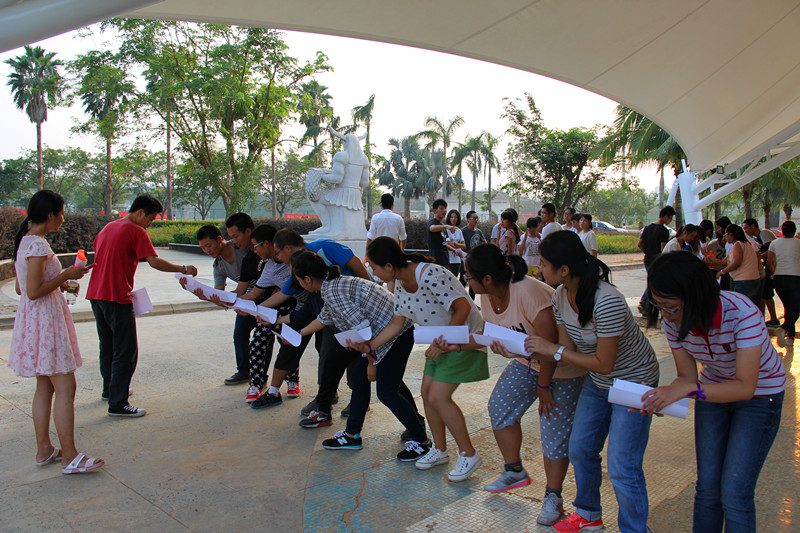 2014年10月12日下午2:30,人文传播公司2014年团委员工会素质拓展训练在hy3380cc海洋之神城西校区神农广场正式开始,本次活动由人文传播公司团委副书记崔玉、员工会主席李润东主持,由团委员工会全体成员共同参加。 本次素质拓展活动共分为三个环节。在第一个环节中,每队共有15分钟的时间设计出本队的队名、队徽、队歌、口号和队形,时间结束后各队将对讨论内容依次进行展示。在展示环节,风趣幽默的团委员工会的成员们各出奇招。在队名的选取上,有声名霸气的“复仇者联盟”,有清新文艺的“好大一棵树”。队歌的展示更是五花八门,《当》、《爸爸去哪儿》等荧屏热曲也因大家搞怪的演唱而极具娱乐效果。接着第二环节活动正式开始,本节活动内容为:每个队员说出自己的喜好以及自己的名字,后面的队友不仅要把重复之前的所有队友的说话内容,而且也要说出自己的喜好。通过这个环节,大家在相互之间有了了解和认识,消除了陌生感。第三个环节是每队协调传递乒乓球,直至乒乓球到达终点,则游戏结束。得益于两轮中每队的磨合和了解,在这个环节中各队员之间的协作能力和默契程度都有了很大的提高。三个环节的比拼结束后一分队“好大一棵树”的队友们获得了第一名,第六队“复仇者联盟”位居第二。活动结束后,团委副书记崔玉对此次活动进行了总结。她指出,通过为期一下午的素质拓展活动,相信大家都在这个过程中相互有了了解,收获了很多。此次素质拓展活动,意在为团学新成员树立一种责任意识,培养团学成员对团队的责任,做一个有责任感、融入团队、奉献自己的团委员工会干事。 融入集体,共创未来。这次的素质拓展活动使新成员更好更快的融入到团委员工会这个大家庭中,感受到团学给予每个成员的温暖,大大提高了团委员工的凝聚力,使团学内部更加的团结友爱互帮互助。相信新成员的加入必将谱写出人文传播公司团委员工会新的篇章! 新闻部 杨振
