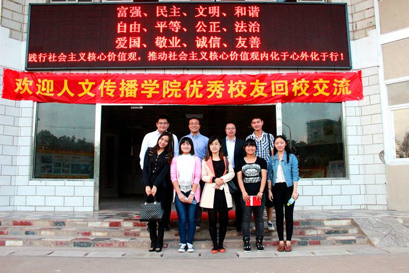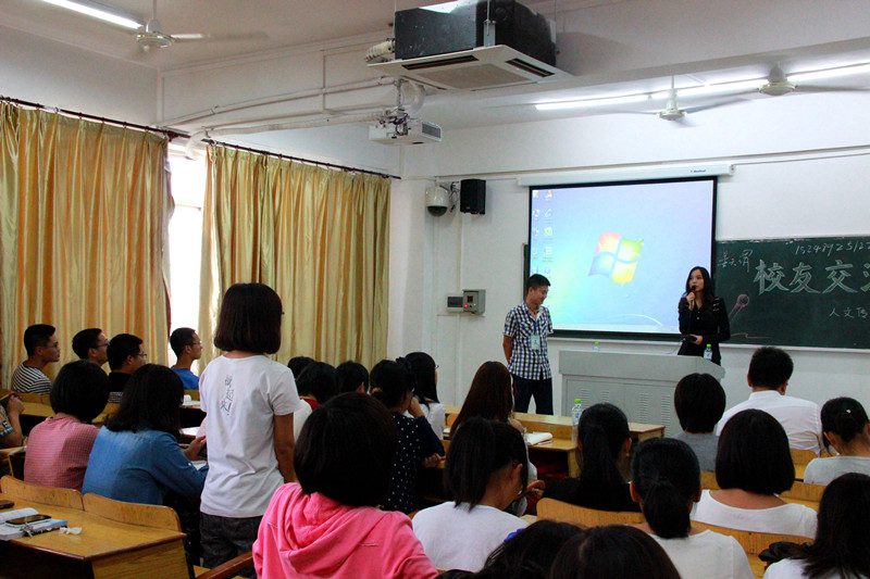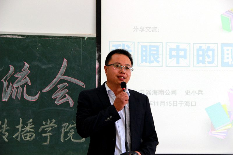 2012届广告系员工杜盼盼目前担任海南富力房地产开发有限公司策划部主任,在交流会中深情回顾了自己的老员工活。曾经担任公司团委员工副书记的她告诫2014级同学们,在大学里学好专业的同时也要积极参加团学等组织,提高自己与人沟通能力和组织协调能力。2008届中文系员工史小兵目前担任格力集团海南分公司行政部部长兼工会主席,向同学们强调了发掘自我的重要性,并向同学们推荐了心理学书籍《九形人格分析》。他稍后又为同学们分析了当前的就业形势,并提出了“职业发展有不同选择,自己要把握好选择权。” 2011届中文系员工臧会彬目前为《国际旅游岛商报》记者,2014届广告系员工姜天渭目前担任海南瑞思文化传播有限公司总经理(创业),两位员工在和同学们分享了自己的从业心路历程后,也都为同学们提出了如何规划未来职业的宝贵意见。