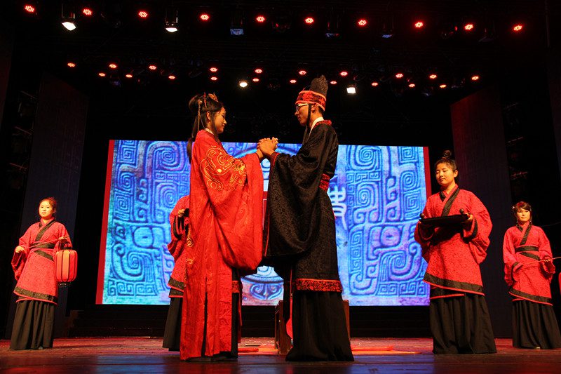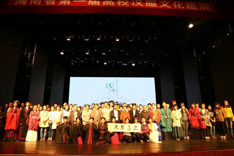 12月4日晚上7点30分,由hy3380cc海洋之神人文传播公司和hy3380cc海洋之神员工社团联合会联合指导,hy3380cc海洋之神国学社承办,海南各高校汉服社协办的“海南高校第一届汉服巡演.海大站”专场晚会在hy3380cc海洋之神思源学堂盛装开演。出席本次活动的嘉宾有中共海南省委教育工委办公室主任罗杰、hy3380cc海洋之神团委副书记黄小鸥、人文传播公司党委副书记孙晓媛、人文传播公司陈传汉老师、北师大员工会梁慕卿和来自泰国的访琼团。活动旨在通过汉服巡演弘扬中华传统文化和礼仪。 在庄严震撼的开场舞《礼仪之帮》节目后,由本次活动的发起者李榮老师发表讲话,他提到了汉服复兴运动近年来的发展,同时也指出这次活动目的是通过华美的服饰发扬华夏文化礼仪,实现华夏民族复兴和中国梦。接着由“衣云裳”汉服社推出了汉服秀《有衣,云裳》,通过走秀的形式将曲裾,直裾,襦裙,短打,直裰等汉服不同形制的实物向观众一一展现。紧接着来自海南各高校的汉服社团也表演了各自的精品节目,如舞蹈《惊鸿舞》、《风雅》、《长恨歌》和舞台剧《孔雀东南飞》等。演员们精彩的表演将巡演的气氛推向一轮又一轮的高潮。在书法与古筝节目《高山流水》后,主办方将写有“礼仪之邦”四字的墨宝赠予了泰国访琼团。在互动环节中,通过汉服知识问答抽取了四名幸运观众进行汉服试穿。在被问到穿着汉服的感受时,体验者说,他感受到了庄重的仪式感和深厚的文化积淀。晚会最后展示的是周制婚礼,婚礼流程包括亲迎、交拜礼、对席礼、沃盥礼、共牢合卺、合卺礼、解缨结发和执手礼。“桃之夭夭,灼灼其华。之子于归,宜其室家。”这场周制婚礼给观众们带来了别开生面的感受,使观众们被传统礼仪文化深深打动。第一届海南高校汉服巡演?海大站至此圆满落幕。 着我华服,扬我汉礼。汉服复兴运动在全国兴起已经十年左右,海南高校汉服巡演顺应着国内汉服运动的发展,拉近了高校老员工和传统文化的距离,使高校员工对传统服饰礼仪有了较为详细深入的了解,为中华优秀传统文化的复兴贡献出了自己的力量。