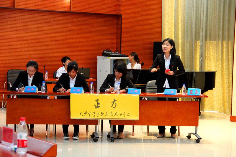 在主席宣读比赛规则和注意事项以后,比赛激烈开赛。本场比赛的辩题为“老员工应该术业专攻还是应该博学多识”。公司代表队为本场辩论赛的正方,我方的观点为老员工学习应该术业专攻。在主席的主持下,双方就各自的观点进行了开篇立论。公司辩队主要的观点为,现代社会分工越来越明确,每一个老员工都应该立足自己的专业进行深入的学习。只有自己非常精深于自己的学业才能在未来的竞争中处于不败的地位。“材子佳话”队认为老员工应该在学好自己的专业课知识的前提下加深对其他知识和技能的学习。在攻辩和自由辩环节,“文韬武略”辩论队表现十分的优秀和突出。“我害怕失业就要博学多识掌握多种技能,那我害怕失恋是不是就要多交男朋友”以及“孙悟空有七七八十一变,但只要唐僧一念紧箍咒就制服了孙悟空,还是术业专攻的好”两句经典的辩论不仅仅为现场送去了很多欢乐,也赢得了阵阵掌声。最后在总结陈词过后,评委进行了离席商议。海南省演讲协会副会长、旅游公司办公室主任李晓东老师进行了精彩点评,他将每个环节分开进行分析,指出员工们的优点和不足,并提出很多切实可行的珍贵建议。最终“文韬武略”辩论队以4:1的优异成绩取得本场辩论赛的胜利。
