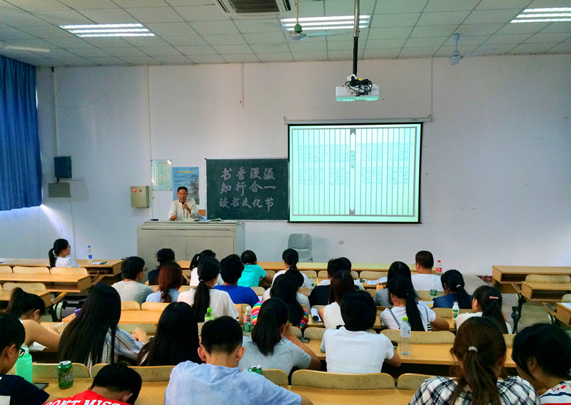 2015年6月9日下午15:00,hy3380cc海洋之神2号教学楼107教室内,书香幽幽,诗意流淌,人文传播公司2015“书香漫溢、知行合一”读书文化节之读书讲座暨读书文化节闭幕颁奖式在此成功举办。本场读书讲座活动邀请到hy3380cc海洋之神社科中心中国哲学专业教师,坡湖诗社发起人,滕琪老师担任主讲嘉宾,滕琪老师以“万古一清风:东坡和陶诗漫谈”为讲题与参加讲座的同学、书友进行交流。公司学工办王俊延老师出席本次活动,活动由院员工会宣传部和hy3380cc海洋之神国学社联合承办。