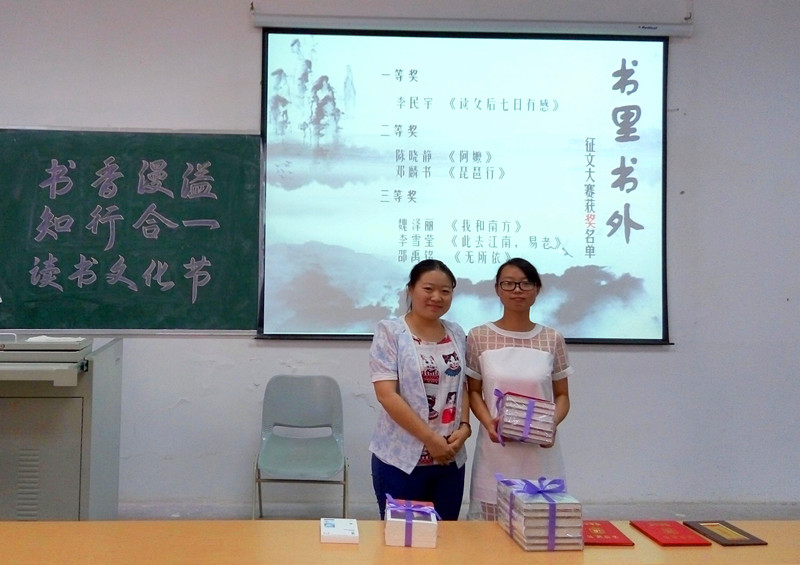 在读书讲座上,滕琪老师带领各位参加讲座的同学领略了苏东坡的人格魅力及其和陶诗的特点,同时滕老师向大家介绍了中国古人诗歌唱和的文化传统,结合东坡的和陶诗,教予大家如何体会古诗的韵味并在古人诗歌韵味的品味中感悟传统文化的精髓。讲座期间,同学们认真聆听,并与滕琪老师展开互动交流,滕琪老师也对同学们提出的问题作了一一解答。整场讲座,情理兼具,诗意流动。在本场读书讲座活动结束后,2015“书香漫溢,知行合一”读书文化节“书里书外”征文比赛及“方寸藏韵”书签设计大赛的颁奖仪式依时举行,同时现场对“方寸藏韵”书签设计大赛优秀作品进行了展示,伴随着颁奖仪式的结束,历时一个多月的2015“书香漫溢、知行合一”读书文化节画上了圆满的句号。