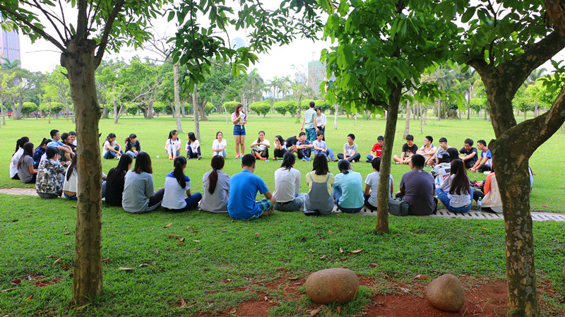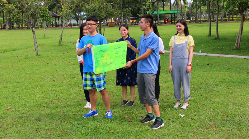 两院团委员工干部于上午九点集合完毕,一场激动人心的交流活动就此拉开序幕。当天,阳光正好,在放眼看去满是绿色的草地上,两院团委成员如约而至,并在草地上进行了简短有趣的自我介绍。随后进行搭配分组,在进行团队的口号、队名和队歌的展示之后,为拓展大家的团队意识和协作能力,首先组织了一个简单的团队活动——“乒乓球接力”,此项活动主要是为了尽快磨合分在同一组的两院团委员工干部并着重提高队员们的团队意识和互相配合的能力,增进彼此的友谊。