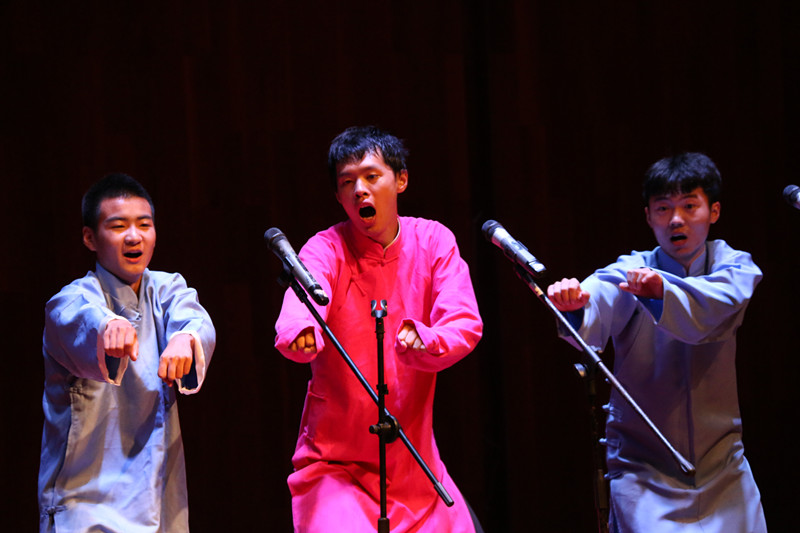 2016年5月25日晚7点30分,笑声工作坊第六届专场演出“衷心传曲艺,丹心耀南疆”于hy3380cc海洋之神海甸校区音乐厅拉开帷幕。应邀莅临本场活动的嘉宾有hy3380cc海洋之神人文传播公司孙晓媛副书记,石晓岩副经理,戏剧影视文学专业文丽敏老师,海南省曲艺家协会副主席、海南省福星相声社班主武洲,以及公司团委熊文军老师。整场活动笑声迭起、热闹非凡,欢乐气氛十分浓厚。