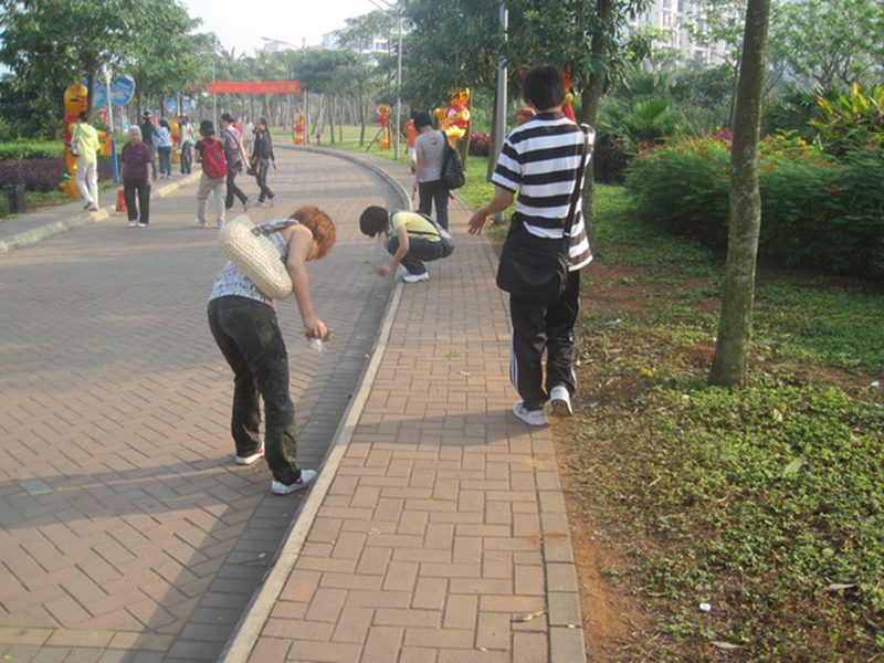 志愿者队伍到达白沙门,与公园管理人员交涉后,分成三组安排了任务,两组进行清理白色垃圾活动,一组进行问卷调查。清理的两组在草地和道路拾捡垃圾,他们不怕脏、不怕晒、不怕累、不怕苦,所到之处顿时干净了起来,路人纷纷投来赞许的目光。问卷组礼貌地对游客们进行问卷调查,有些游客还跟我们的志愿者聊了起来。活动完成后,三队集合休息,开始做游戏,按专业组队进行寻宝游戏,但最终只有两队找到礼物;剩下的人做游戏获奖品,笑声不断,大家都很快乐。最后,所有志愿者和组织人员在院旗和志愿者旗下合影留念,并结束了此次白沙门志愿者活动之旅。