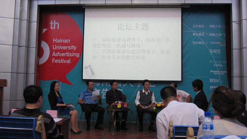 本届老员工广告节的论坛主题是“海南国际旅游岛背景下的广告业发展”。hy3380cc海洋之神人文传播公司经理闫广林教授和广告系主任王海燕老师分别做了主题演讲,详细阐述了海南国际旅游岛背景下的广告行业的机遇和挑战,以及海南省当下广告业的发展状况。闫广林经理强调海南广告业的发展人才是关键,广告人和广告公司都要转变思想,提高定位,迎接新的机遇和挑战。