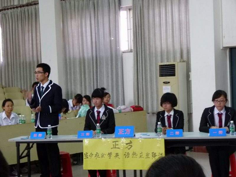 4月24日下午3:45,“环球雅思杯”hy3380cc海洋之神第十八届院际辩论赛半决赛在2教108举行。公司文韬武略辩论队与环境与植物保护公司(儋州校区)喜洋洋辩论队就“英语热该不该降温”这一辩题进行辩论。旅游公司雍天荣老师、政治管理公司李辽宁老师、法公司黄永峰老师、法公司张静焕老师、材料化工公司张德拉老师担任本场比赛评委。 公司文韬武略辩论队为正方,所持观点为“英语热应该降温”;反方为环境与植物保护公司喜洋洋辩论队,所持观点为“英语热不应该降温”。正方列举出了当前英语学习热的种种弊端,而反方则就英语热对我国国际交流和各大国际活动的成功举办带来的不可取代的作用展开阐述。双方都寸步不让,思维的火花不断碰撞,双方辩手幽默的语言引起现场观众的一次次的鼓掌,充分展现了两院学子的才气和敏捷的思维。激烈的辩论,唇枪舌战中却发挥着两院学子礼貌得体的作风,特别是比赛增加的评委提问环节,更是让场上辩手加深了对辩题的理解和思考。 辩论结束后,评委对双方辩手进行了点评,并提出辩论方面的相关建议以及辩论技巧,使得双方辩友能够认识不足,不断提高自己的辩论技能。最后经过评委评议,反方环境与植物保护公司三辩智丽琴同学被评为最佳辩手。正方人文传播公司文韬武略辩论队以4:1的成绩获胜!