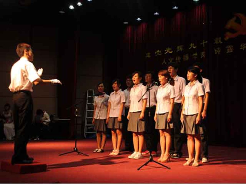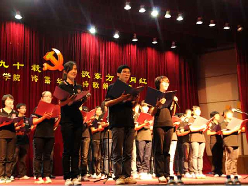 为了热烈庆祝中国共产党成立九十周年,弘扬红色革命精神,传诵红色革命经典,人文传播公司团委员工会于5月15日晚上7:00在公司原行政楼二楼报告厅举行“建党光辉九十载,踏歌东方五月红”诗露华语诗歌朗诵比赛。本次比赛邀请到人文传播公司党委副书记孙晓媛老师、中文系刘显老师、中文系张硕果老师、戏剧影视文学系鞠斐老师、戏剧影视文学系李骞老师担任评委,公司团委书记谢庚全老师、学工办公衍峰老师、学工办王森森老师、农公司学工办王远露老师作为嘉宾出席活动。 比赛开始前,一首公司团学干事们深情朗诵的诗歌《青春中国》引燃了同学们的激情。接着,由公司各年级专业同学朗诵的《我爱你中国》、《革命的回响》、《中国年轮》、《大堰河,我的保姆》、《光的赞歌》等精彩诗篇也赢得了观众的阵阵掌声。诗句歌咏祖国,诗声传递热情!很多代表队还在朗诵的基础上加入了歌唱、舞蹈、书法等富有创意的艺术表现形式,一首首诗歌被他们演绎的形象动人。而由人文传播公司文工团带来的歌曲《爱我中华》、舞蹈《心若在》也点燃了全场的气氛,场下掌声雷动,观众们热血沸腾,他们被台上声情并茂的朗诵和精彩绝伦的表演深深地感动着。 经过评委老师们的认真评判,最终名次确定:08广告获得一等奖,09对外汉语、10广告获得了二等奖,09广告、10戏影、08中文获得了三等奖。本次大赛还评出优秀奖、最佳创意奖、最佳舞台风尚奖若干。 诗歌朗诵比赛在一片热烈的掌声中圆满落幕。通过本次大赛,同学们不仅表现出了高超的朗诵水平,更重要的是抒发了自己爱国爱党的热情。让我们以诗歌向亲爱党和祖国献礼,愿伟大的祖国在我们这一代的努力下会更加繁荣! 人文传播公司通讯部:侯晓宁