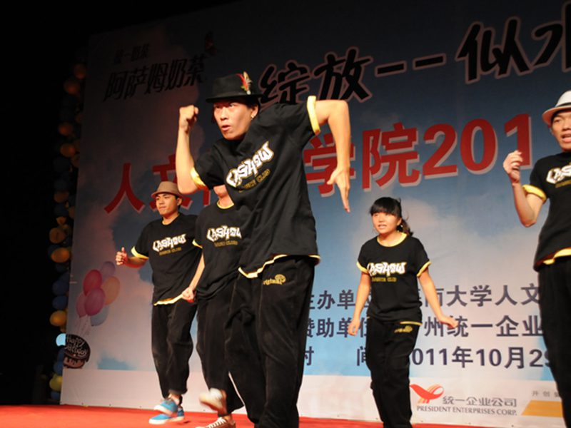 2011级戏剧影视文学的同学们用诙谐的语言,夸张的表演俘获了观众的笑声和欢呼声。浪漫的舞台剧和海大B-BOX协会新颖的表演更是激起了晚会的阵阵高潮。《筝韵墨香》中古筝与书法的完美搭配让我们似乎穿越了时空,回到了千年前的幽幽竹林中。