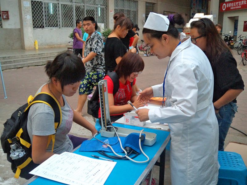 本学期第九周是人文传播公司的无偿献血周。4月20日下午五点,海南省血液中心在二食堂门口设立了临时献血点,以便于同学们进行爱心献血活动。爱心协会的志愿者也来到现场帮助医务人员安排同学们的献血行动。