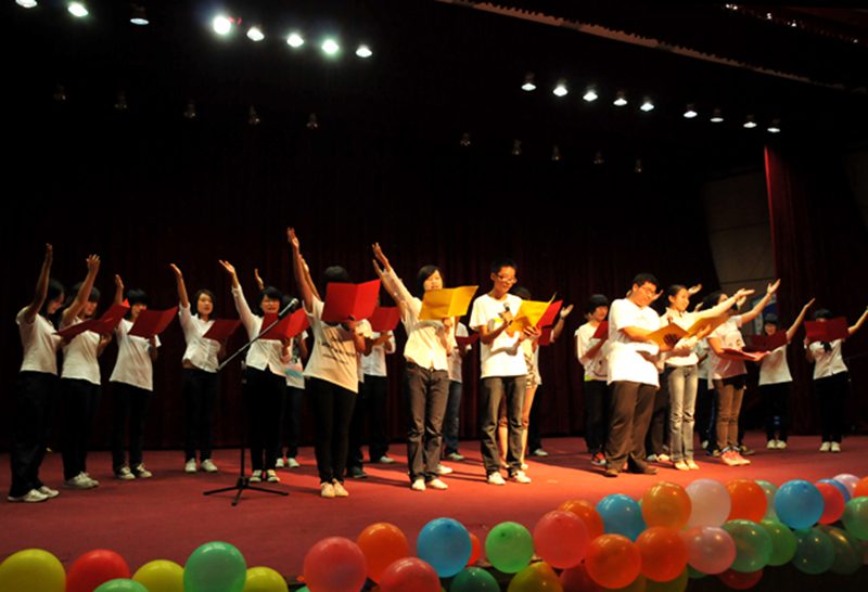 人文传播公司五四歌咏比赛暨五四表彰大会于5月6日下午三点在三教行政报告厅成功举办。人文传播公司党委副书记孙晓媛老师,团委书记谢庚全老师,学工办公衍峰老师、王森森老师、熊文军老师出席表彰会;此次歌咏比赛还荣幸的邀请到人文传播公司毕研韬,高海洋,高智,鞠斐四位专业老师担任评委。 本次晚会以“忆峥嵘岁月,谱青春诗章,乘文明之风,铸明日辉煌”为主题,在同学们的期待中拉开帷幕。此次晚会分为“昨日、今日、明日”三个篇章,将五四精神以别样的方式传递给了人文学子。晚会中,各参赛团体将十八般武艺一一呈现给观众,充分展现了我人文学子能文能武的精神风貌。同时,本次晚会还为此前评比出的优秀个人,优秀团体等获奖者颁奖。晚会以诗朗诵,歌伴舞的比赛形式,展现五四精神和当代青年人的时代风尚,最终通过经过激烈的角逐,09级戏剧影视文学专业脱颖而出,以一首别具匠心的“最炫戏影风”拔得头筹。晚会在同学们的欢呼中落下了帷幕。