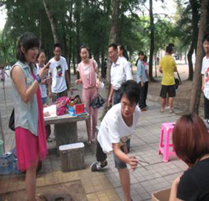 5月11日下午5点40 分,人文传播公司“5•25”心理活动月活动“快乐向前冲,欢乐大家赢”心理团体游戏在起点草坪旁隆重举行。此次活动由人文传播公司团委心理工作部主办,并得到了公司团委和员工会的大力支持。活动以“全民参与,欢乐大家庭,有你才行”为口号,以营造和谐宽松的气氛为目的,让同学们健康成长的同时感受到了公司的温暖,吸引了很多同学参与。 本次团体游戏一共分为5个环节——分别是贴鼻子,摞象棋,夹乒乓球,投飞镖,跳绳等五个游戏,内容多彩,每项游戏通过后更有精美礼品赠送。例如摞象棋游戏不仅要参与者在规定的时间内落起相应数量的象棋,更要求做到一心二用,在落棋的同时回答对有关心理小问题。其他四项游戏也各具特色,精彩万分。活动不仅吸引了许多本公司的员工来参加,还吸引了经过的路人纷纷侧目,加入活动中来。 此次活动在学习之余为人文院的广大学子们提供了一个放松的机会,让他们在欢笑中悦纳自我,在游戏中感恩生活。7点20 分,活动圆满结束。