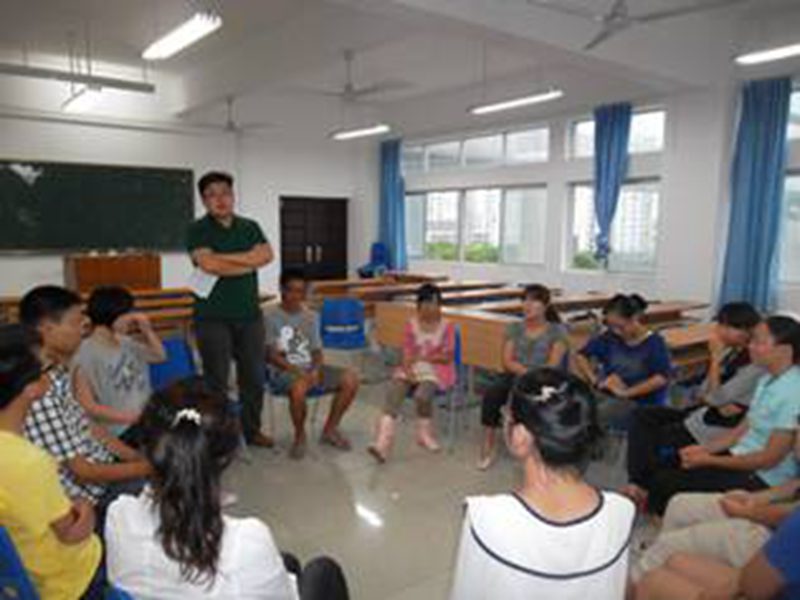 为了更好地达到团体心理辅导的效果,老师让同学们亲切地围坐成了一个圆圈。王森森老师先向各班心理委员讲解了团体心理辅导的基本知识,然后再带领着大家进行了如“大风吹”等一系列的小游戏,并在每个小游戏之后,请一些同学谈谈自己在这个游戏当中所收获的一些感悟。在不断爆发着欢笑的游戏当中,成员们都明显地感受到了通过这些小游戏彼此间从完全陌生到打成一片的整个快乐过程。