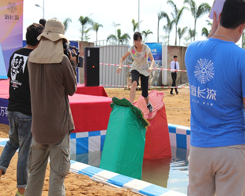在活动现场,同学们积极参加了本次活动。现场气氛热烈,观众们也为上场挑战的选手们加油打气。赛道共设了5关,选手们依次对这些关卡进行挑战。虽然落水的不在少数,但也挡不住后面参赛选手的热情,本次素质拓展活动也顺利开展。