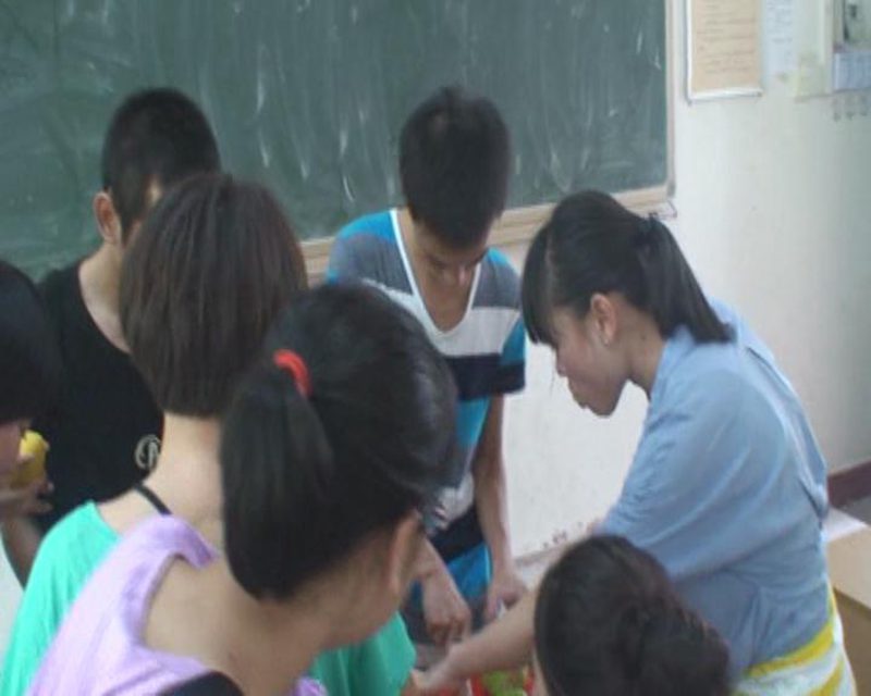 班委为同学分发水果
