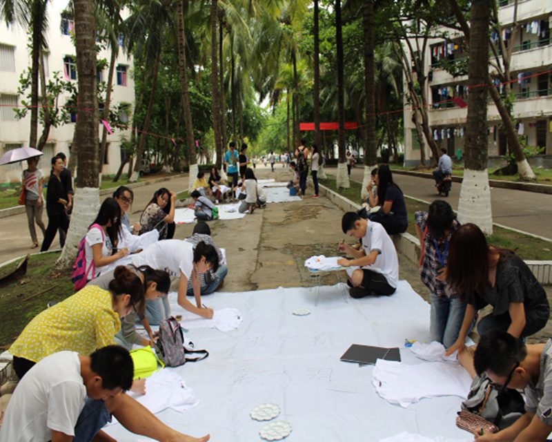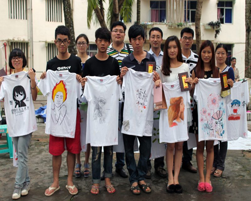 5月5日下午2点30分,由人文传播公司主办的以“画你MAY”为主题的T恤设计大赛在校椰林小道成功举办。人文传播公司团委学工办公衍峰老师、王森森老师、熊文军老师、王俊延老师、陈坤峰老师、以及院员工会主席韩啓雄均参加本次活动。 活动还未开始,就有许多同学提前到达,进行相关的活动报名,生怕错过本次大赛的机会。两点半活动准时开始,在工作人员清点参赛人数后,参赛人群每五人一组分配到不同地点设计自己的DIY作品。不久之后,大雨突然袭来,不过突如其来的大雨丝毫也没有打消参赛者的热情。不时有同学冒雨前来参加现场报名,雨中涂鸦。天公作美,3点30分左右,天空放晴,T恤设计大赛继续开始。参赛者纷纷在椰林小路上继续自己的创作。截止到5点30分活动结束,共有来自6个公司的约50名参赛选手在规定时间上交作品,经过几位老师和参看同学的集中投票,分别产生了本次涂鸦大赛的一二三等奖,公司团委学工办的几位老师分别为获奖选手颁奖,本次T恤设计大赛取得圆满成功。 本次T恤DIY设计大赛增强了公司员工与兄弟公司之间的沟通联系,丰富活跃了校园文化氛围,提升了当代老员工的设计创新和动手实践能力。 人文传播公司通讯部 刘泊宁