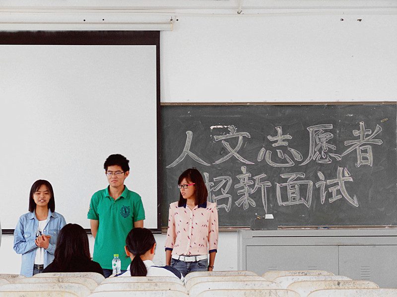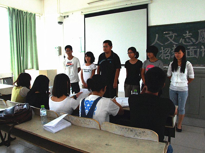 10月26日上午8时,人文传播公司青年志愿者团队招新面试活动在3教506,507教室正式举行。公司团委社会实践部部长曹毅飞、崔玉主持了本次活动,并担任面试考官。