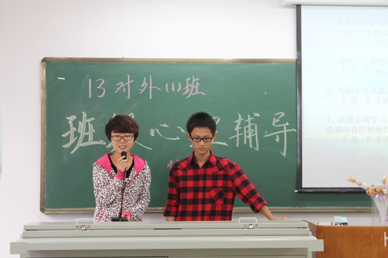 11月22日,人文传播公司13级汉语言国际教育1班在5教315教室开展了以“适应大学,迎战未来”为主题的心理团体辅导活动。本次活动由心理委员李润佳和符德炎同学主持,13级汉语言国际教育1班的全体同学参加了此次活动。 活动开始时,李润佳和符徳炎同学通过一段视频,向班级同学展示了现在老员工的生活现状。随后,通过一套心理测试题目,对班级同学的心理健康状况进行测试。活动过程中,李润佳和符徳炎同学带领班级同学进行了“解开千千结”、“心有灵犀”、“思维跳跃”等趣味横生的团体辅导游戏。同学们积极参与,掌声阵阵。