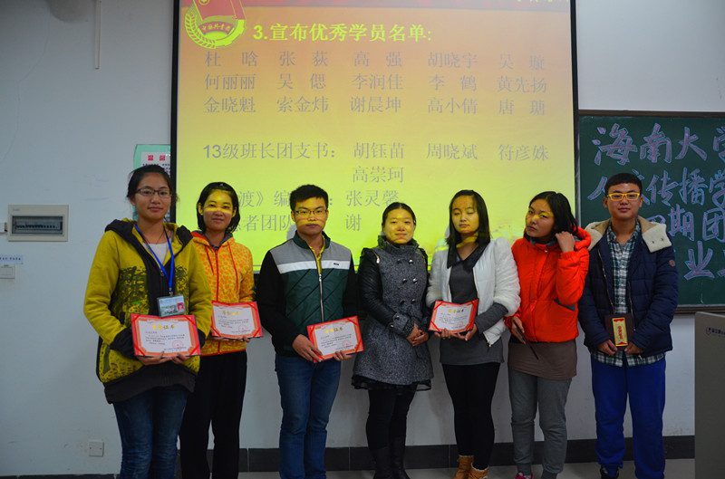 2013年12月17日下午5:00,hy3380cc海洋之神团校人文传播公司分团校第六讲暨结业典礼在4教112隆重举行。出席本次活动的嘉宾有学工办熊文军老师 、王俊延老师,人文传播公司员工会主席李文杰 王忠莉 康墨扬。本次活动由员工团委副书记夏国淞主持,人文传播公司第四届团学干部培训班全体学员共同参与。 会议首先由团委副书记夏国淞致开场词和介绍到场嘉宾,接着熊文军老师做了团校总结发言。熊老师首先对各位同员的顺利结业致以祝贺,并回顾了本期团校培训。熊老师说在培训过程中无论是室内理论课学习,还是室外素质拓展,每位学员都能参与其中,精诚团结,相信短短的团校培训会是各位学员老员工活中一段美好的经历和记忆。最后他对所有学员在团校中的表现给予了充分肯定并提出几点希望,他希望在坐的各位团学干部能充分发挥好引领、团结、服务广大人文学子的员工干部职能。 讲话结束后,优秀学员颁奖仪式隆重举行。在历经一个多月的培训后共有来自全院的21位同学获得优秀学员称号。颁奖结束后优秀学员代表胡晓宇做了精彩发言。她提到在一个多月的培训中对中国共青团有了全新的认识,并获得了很多宝贵的经验,在以后的工作和生活中也将坚持践行中国共青团的精神。会议的最后全体起立奏唱中国共产主义青年团团歌。 在为期一个多月的培训中,各位学员在团课中学习了实践技能,掌握了新媒体的运用,也懂得了珍惜团员工活。在素质拓展训练中,展现了学员们敢于拼搏的精神,体现了团学紧密合作,齐心协力的团队精神。短暂的团校培训落下帷幕,相信广大学员将在今后的工作中学以致用,积极地发挥好员工干部职能作用。