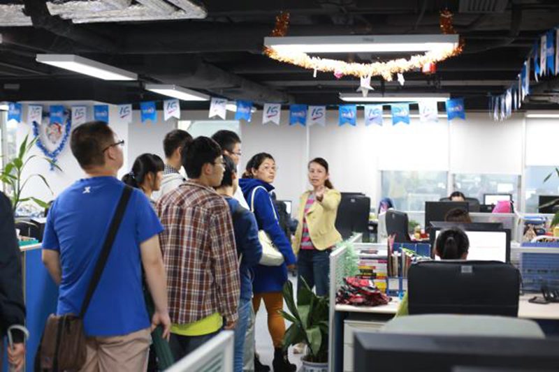 王思梅经理带领同学们走访了社区的各个楼层,热情介绍了各个部门的位置以及工作职责等情况,十分形象地进行阐释,通俗易懂。参观结束后,三位负责人与公司师生在公司休息区进行了互动交流,热情回答了同学们关心的具体问题,并且对有志于加入社区工作的同学介绍了各个职位需要具备的基本素质和能力,重点强调了公司在招聘时更加看重的毕业生的学习能力、影响力、生活态度、沟通能力和自我管理能力这五方面。现场气氛活跃,同学们积极提问,收获颇丰。