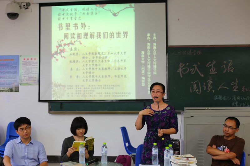5月13日下午15:00,人文传播公司“书式生活,悦读人生”读书文化节之“书里书外:阅读和理解我们的世界”读书分享会在4教214如期举行。本次分享会邀请到公司现当代文学研究领域的四位青年学者,旨在提高同学们对中国现当代文学的兴趣,从而更加全面的认识和理解我们当今所处的社会与世界。莅临分享会的嘉宾有人文传播公司汉语言文学系主任张硕果老师,汉语言文学系朱杰老师、李音老师;人文传播公司石晓岩副经理主持本次读书分享会。 在研究生代表尹泽松同学对莅临嘉宾简单的介绍开场后,分享会主持人石晓岩老师对本次分享会作了简要的发言,提出了自己对本次读书分享会的理解与看法。随后由朱杰老师发言,他先将现当代文学与古典文学作了比较,他指出虽然现当代文学不如古典文学那样优美抒情,但却更能与我们生活接壤,因为他具有其自身的政治性和社会性,紧接着他为同学们推荐了费孝通先生的《乡土中国》,通过将中西方文化作对比,提出了中国的文化应该有自己的逻辑,各个文化互相做对比才能从中看出彼此的优劣。随后由李音老师为同学们推荐了波伏瓦的《第二性》,本书被誉为“有史以来讨论妇女的最健全、最理智、最充满智慧的一本书”,甚至被尊为西方妇女的"圣经"。李音老师通过深入浅出的道理为同学揭示了女性在男权社会里应该有所觉悟,要推翻对自我的限定。张硕果老师为同学们推荐了莫里斯?梅斯纳的《毛泽东的中国及其发展》,本书以一个外国人的视角来展现二十世纪以来中国的变化与发展。在分享会的尾声,现场的同学们对老师们提出了问题并表达自己的看法,老师们都作了详尽的回应。分享会最后由石晓岩老师作结,她告诉与会的同学们,只有不断地阅读,联系起书里书外,才能更好的理解我们当下的生活世界。石老师也向同学们推荐了书籍。 阅读历史,理解当下。现当代文学的社会性与历史性是当下阅读始终都不能忽视的,只有不断地从中汲取营养,才能更好的读懂我们现在所处的这个世界。
