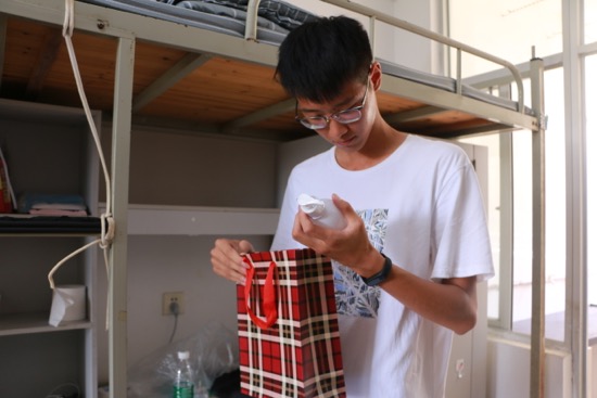 校领导走访城西校区,关心公司工作进度并对新生和迎新工作者进行慰问,迎新工作者向院领导展示了文院为员工们准备的爱心礼包,受到了校领导的肯定。
