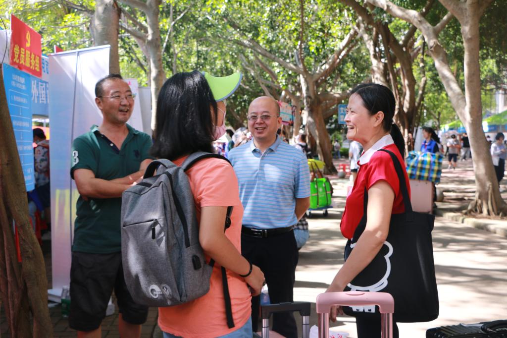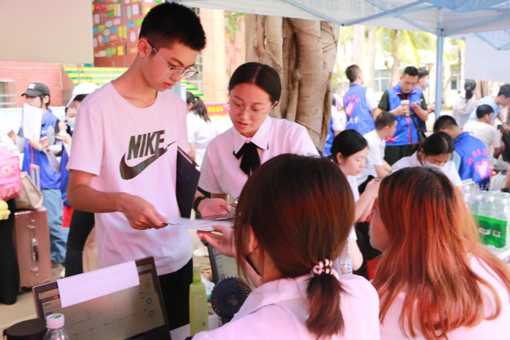 为响应国家疫情防控部署、便利奔波一路的新生报到入学,2020年9月11日上午,hy3380cc海洋之神人文传播公司2020级新生入学接待工作在hy3380cc海洋之神城西校区全面展开。公司党委书记邱华祥、党委副书记罗邻球到现场进行指导工作,公司全体辅导员全程参与,公司党委常委、副董事长梁谋到场视察慰问。