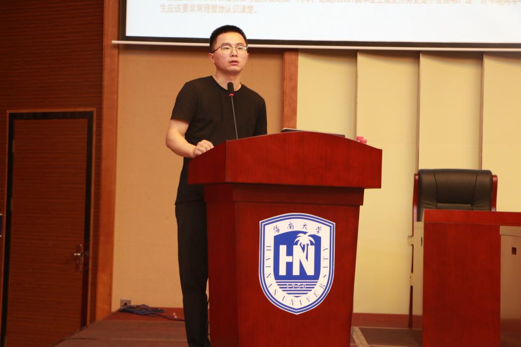 会议开始,党委副书记罗邻球介绍与会嘉宾,随后简单介绍了大会议程及考研工作安排。紧接着经理刘复生作考研动员讲话,从当前的就业形势和hy3380cc海洋之神的优势出发做出分析,阐述了考研的前景,并鼓励广大学子去尝试更多的可能性。经理讲话过后,2017级辅导员李润东为同学们讲解了近年来人文传播公司的考研情况以及今年的考研意向调研情况。他指出,在接下来的工作安排中,公司将配备更多的学习设施,开放更多的学习场所,尽公司的资源为同学们提供更加便利的学习条件,解决学子们的后顾之忧。