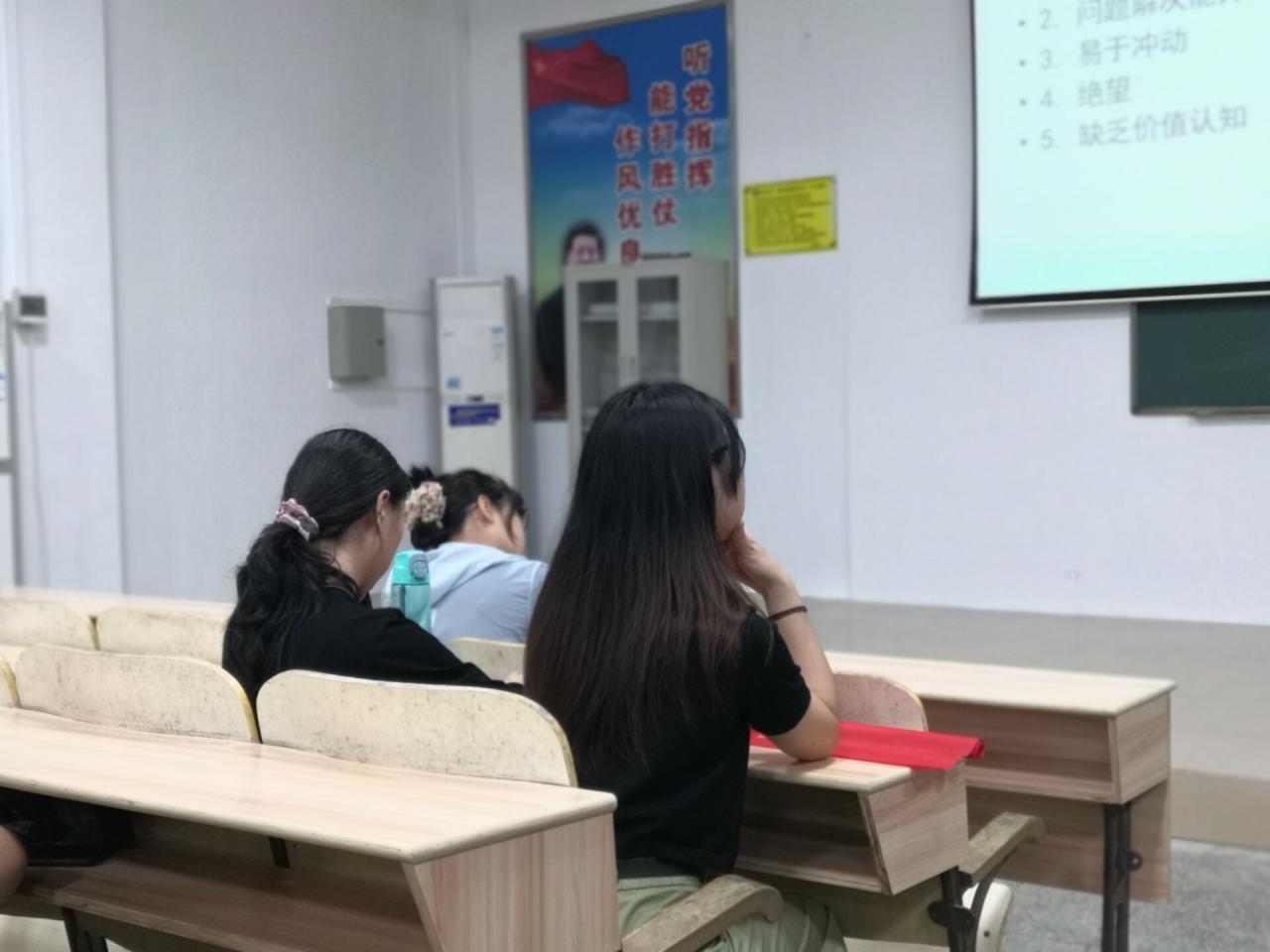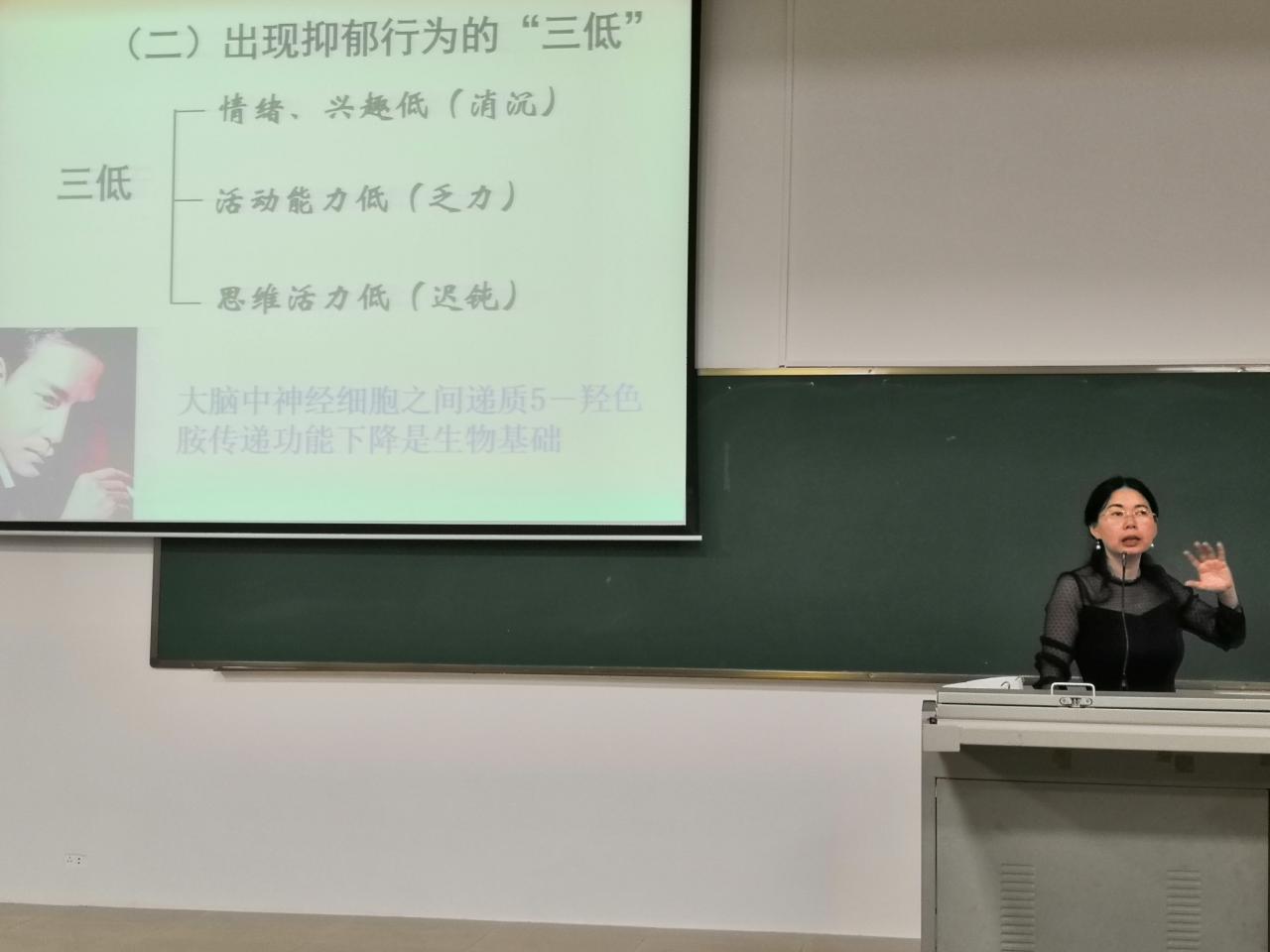 紧接着,老师介绍了精神分裂症和抑郁症这两种最常见的心理疾病,向同学们普及了这两种疾病的征兆、症状以及周围人正确的应对方法。