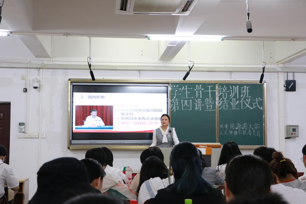 罗邻球副书记以“新时代员工干部的作用与发挥”为题,为培训班学员授课。罗书记根据教育部对高校员工干部工作重要指示,结合当前时事政策,从“高校员工干部的定义与作用”“当前形势对员工干部的素质要求”“充分发挥好员工干部的作用”三个方面讲述了员工干部如何在培养自身优秀能力素质的同时,做好自己的本职工作,积极发挥员工干部的组织、管理、纽带和示范作用。她指出,做一名合格的员工干部,不仅要多多阅读书籍、学习理论知识,同时也要关注时事和政策,保持自身思想的先进性。她也表达了自己对于同学们身心健康的关怀,建议同学们在学习之余要多多锻炼、注意劳逸结合,不仅要拥有先进的思想、广博的知识,更要拥有强健的体魄和宽广的胸怀。