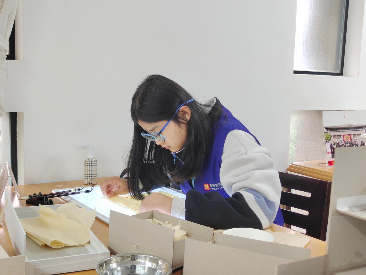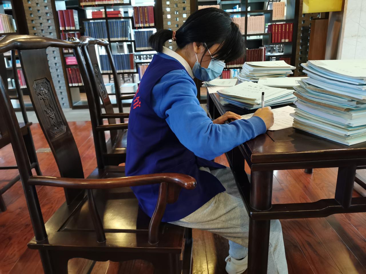 时光飞逝,最后一期的古籍特色文化保护活动在此落下帷幕。在本次志愿活动中,志愿者们分为两组,分别前往古籍修复室和图书服务前台。第一组志愿者一到服务前台,就立刻开始了录入图书信息的工作,两位志愿者分工协作,推进图书信息工作进程。在录入图书信息之后,现场的工作人员又向志愿者们分享了一位向图书馆捐赠琼剧剧本的老先生的心愿,希望志愿者们可以帮助老先生整理琼剧剧本相关信息,之后志愿者便开始整理剧本工作,用手中的笔,一笔一划认真记录下宝贵的琼剧剧本信息。另一组志愿者到达古籍修复室,由于早已掌握了古籍修复的工作,志愿者们轻车熟路地开始了工作,灵活地使用着手中的镊子和毛笔,使得残卷古籍焕发光彩。在和谐的氛围中,志愿活动顺利进行。