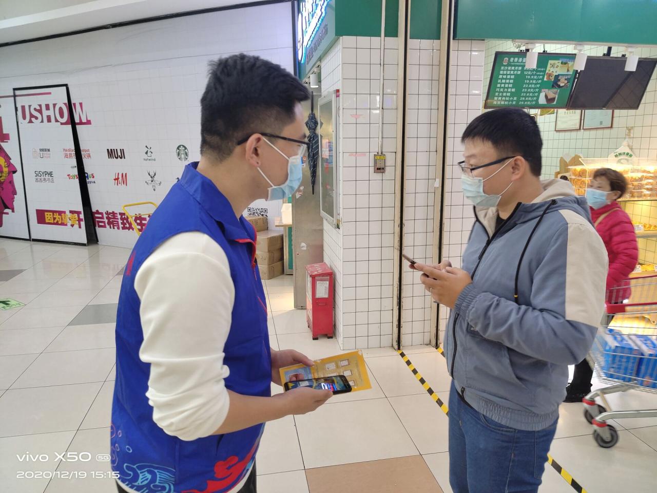 2020年12月19日,在hy3380cc海洋之神人文传播公司青年志愿者协会带队人员的带领下,八名志愿者从hy3380cc海洋之神城西校区出发,一同坐车前往大润发国兴店,开展本学期第六期善行100活动。