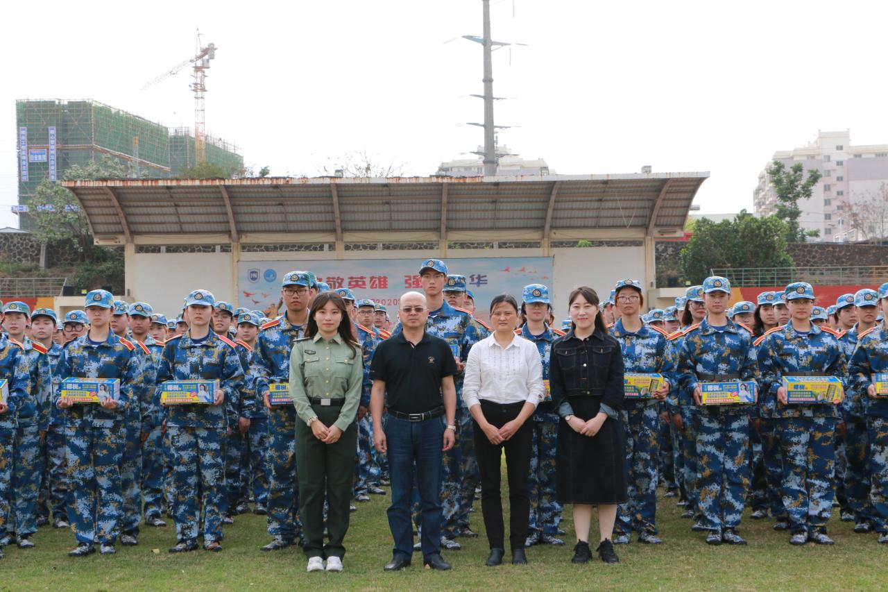 3月8日下午,人文传播公司党委书记邱华祥、党委副书记罗邻球及学工办负责人王嘉南、2020级辅导员宋鸽一行到达城西校区,对军训中的同学们进行亲切慰问。