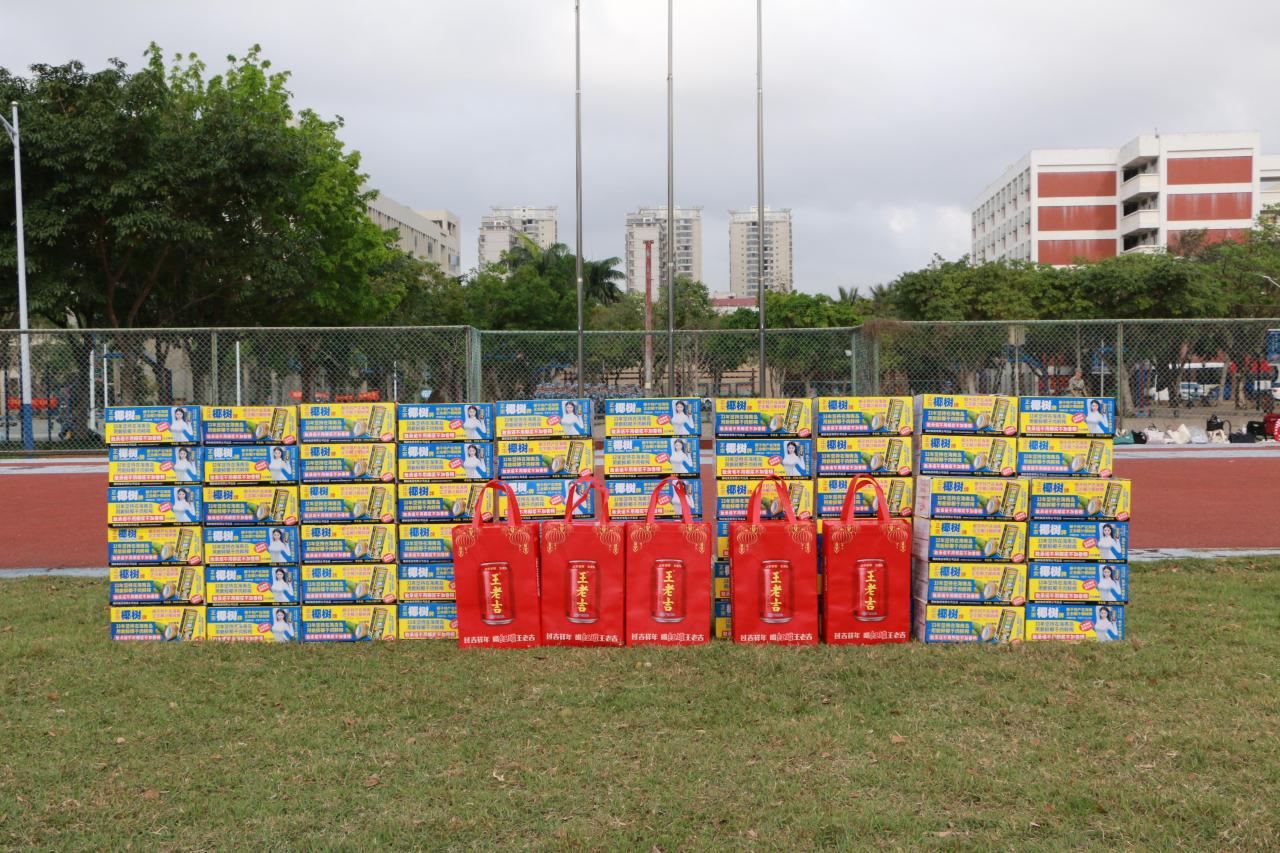 一瓶瓶带有海南特色的椰汁送到同学们的手中后,院领导与全体同学合影留念,慰问活动在欢笑中结束。