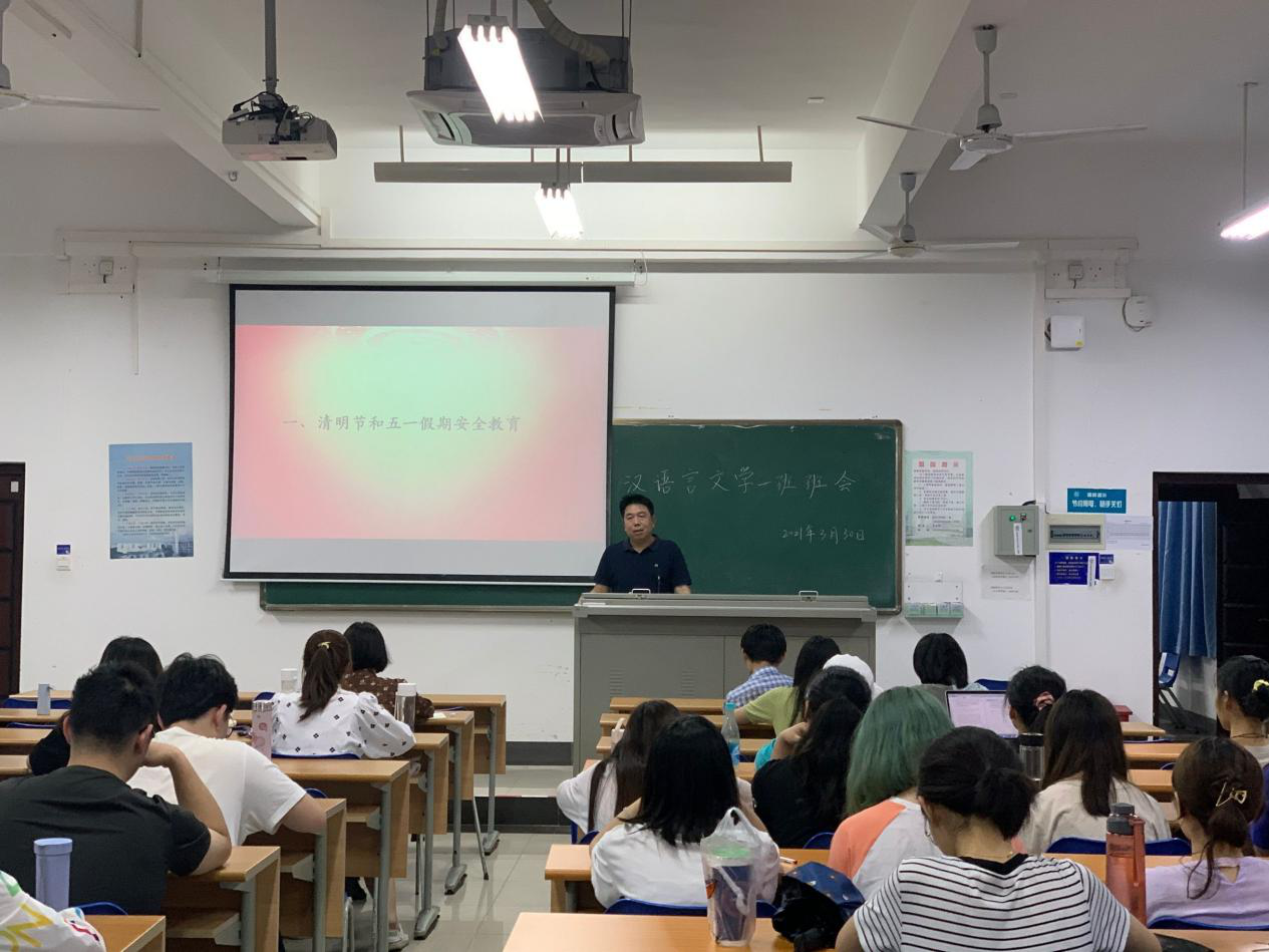 会议第一项,学工办负责人王嘉南讲解安全教育工作。她对清明、五一假期安全教育工作进行阐述,同时指出防疫、防诈骗、防溺水等知识应持续普及教育,实现安全教育工作常态化。