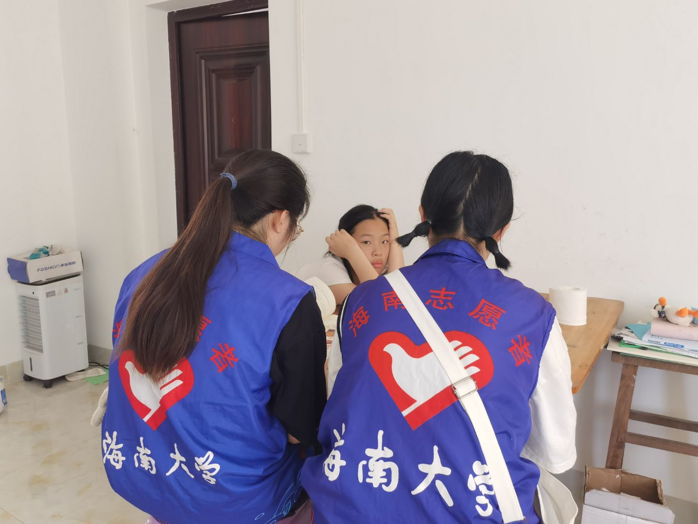 2021年4月4日,在hy3380cc海洋之神人文传播公司青年志愿者协会带队人员的带领下,六名志愿者从hy3380cc海洋之神海甸校区出发,在万福社区集合,开展本学期第一期“博古而通今,挥笔在指尖”万福社区义务家教活动。