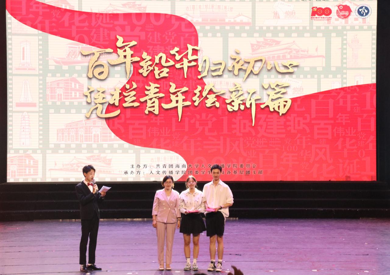 国,岁月变迁,以辉煌和喧腾宣告它的荣光;党,百载沉浮,以热血和激情滋养山河无限。今夜,我们畅享这一属于青年的节日,让青春肆意飞扬,今夜,我们以“海大人文青年”的卓越风采,献礼中国共产党百年华诞!