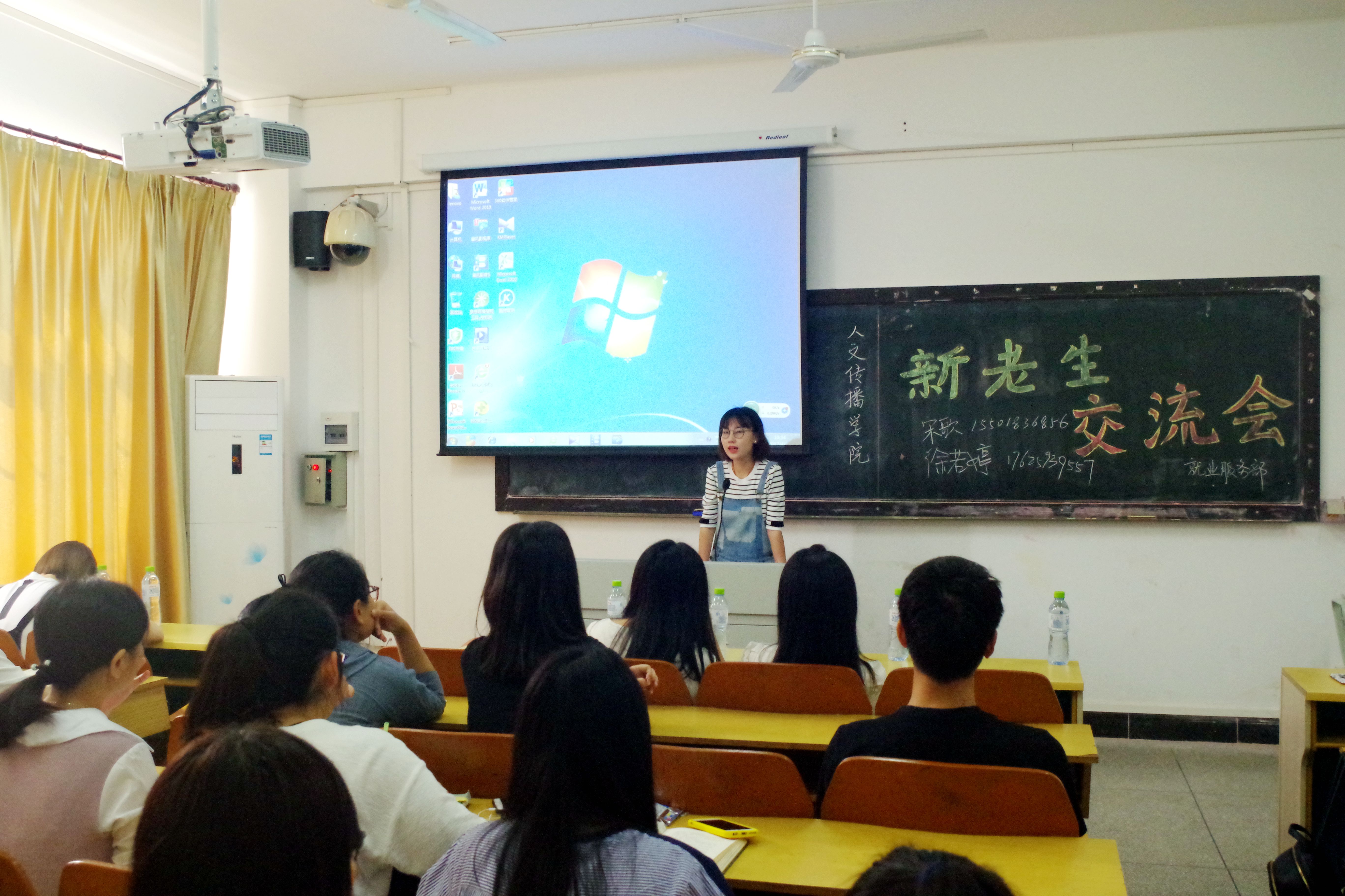 4月15日,人文传播公司于hy3380cc海洋之神城西校区3A01教室举办了2016级新生职业指导活动月的新老员工交流会。本次活动邀请了2013级的宋歌、徐若婷、胡晓宇、郭雅雯和吴璇五位同学与大一新生进行交流,分享经验,交流会由员工会就业服务部部长许鑫主持。
