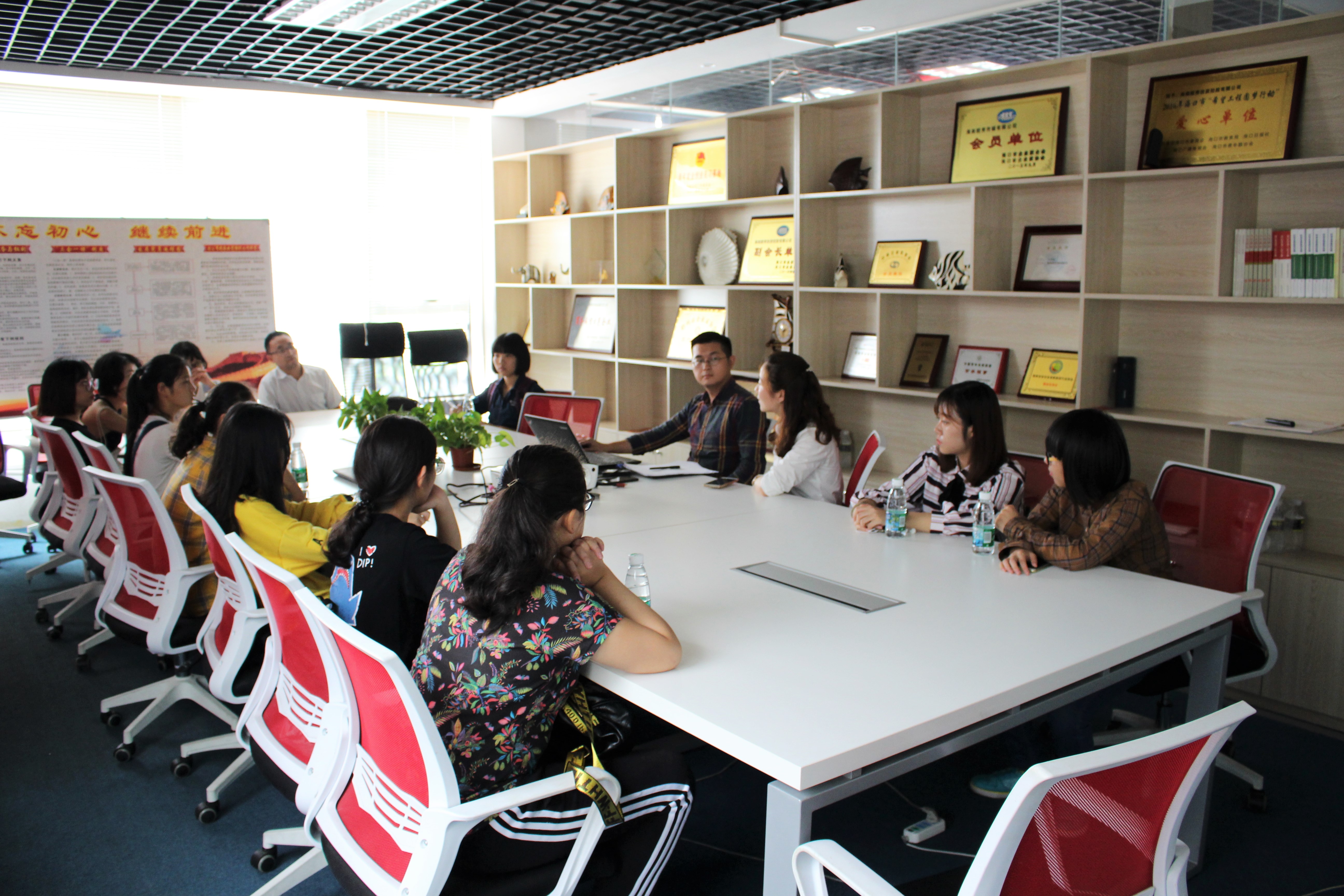 参观结束后,谭均副总经理在公司会议室接待了公司师生,向有志于进入企业工作的同学介绍了各个职务需要具备的基本素质及相应的工作待遇。随后,谭总通过PPT向同学们展示了一些合作案例,如鹿城潮人运动季、cosplay联赛等,激起了同学们的兴趣。最后是自由提问环节,同学们踊跃提问,积极参与,谭总回答了公司内部人员流动、合作项目定位等方面的问题,着重强调了公司招聘时会更看重毕业生的综合能力。现场气氛活跃,同学们收获颇丰。