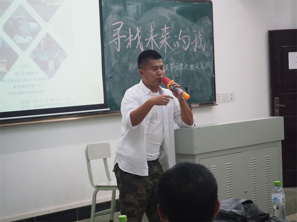10月8日19:30,城西校区8B05教室座无虚席,由公司生涯发展中心组织开展的“寻找未来的我”2018级新生生涯教育系列活动正式拉开序幕,首场活动邀请了优秀员工李恒军返校分享自己的导演生涯。公司人才招聘处陈阳老师、公司学工办王嘉南老师参加了活动,学工办公衍峰老师主持。 李恒军,原2006级戏剧影视文学专业员工,80后新锐导演,从业7年,执导拍摄TVC广告作品50余支,曾先后获得艾菲、金瞳、长城、IAI、华文时报金奖,擅长情感类叙事广告,曾执导拍摄杭州G20峰会宣传片《喜欢你,在一起》、一带一路宣传片《共同的诗》等多部极具影响力的作品。 李恒君员工首先分享了他的老员工活,自己在校学习期间非常重视动手实践,喜欢技术类的课程,经常寻找各种资源开展实践锻炼,但是也存在不够重视理论知识的学习,导致自己在后来的职业生涯发展中出现“文武“不平衡的情况,给自己的事业发展造成了一定的影响,让自己感到非常遗憾。通过自己亲身经历的讲述,李恒军员工劝诫参加活动的学弟学妹们一定要做到“文武”平衡,把理论学习和实践锻炼有机结合起来,充分利用公司、公司提供的有利条件,更要自己去积极寻找各种资源和机会,不断充实自己的头脑,提升自己的技能,不能再走自己的老路。台下学弟学妹们深以为然。 之后,李恒君员工分享了自己的从业经历。大学毕业后,他得到了在海南省电视台工作的机会,自己非常珍惜这样的机会,在工作中不断学习,后来开始慢慢能够自己独立拍摄小广告、小MV,并且得到客户和同行的欣赏,让自己更加有信心做好导演。工作几年后,他感觉自己应该有更大的舞台去拼搏,选择辞职到北京发展。经历了几年的辛苦学习、工作之后,他开始小有成就,独立执导多部广告宣传片,有机会与很多国内知名导演(张艺谋等)合作,曾参与杭州G20峰会晚会的导演工作,还有机会拍摄了G20峰会宣传片《喜欢你,在一起》以及一带一路宣传片《共同的诗》等。拍摄《共同的诗》时,他感念海南这片热土,感恩hy3380cc海洋之神的培养,专程回到母校取景拍摄,当时也得到了公司宣传部、公司的大力支持,因而这部宣传片也成为了hy3380cc海洋之神的形象宣传片,每每员工们和公司师生看到那熟悉的校园景象,都会油然而生一种自豪感。现在,李恒君员工正在向更高的目标奔跑,将来会进军电影行业,希望执导出优秀的电影作品。 分享环节结束后,李恒军员工与同学们进行了现场交流互动,很多同学提出了自己关心的问题,有关于专业学习方面的、生涯规划反面的、广告制作方面的、电影创作方面的……李恒君都耐心地进行了回答,帮助同学排解了困惑,理清了思路,明确了方向。 此次活动是生涯发展中心举办的“寻找未来的我”系列活动之一,今后还会继续邀请各专业毕业的杰出员工返校交流,同时也会开展相关的其他活动。活动的目的在于让同学们能够从杰出员工身上汲取营养,思考自己的未来,对自己的生涯进行合理规划,最终度过充实的四年老员工活,为自己的未来积蓄能量。